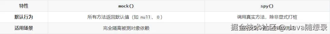 doReturn().when()替代when().thenReturn(),避免意外触发真实方法。 - 避免复杂间谍:不要对复杂对象(如 Spring Bean)滥用