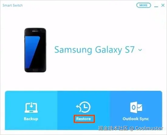 步骤 3. 在计算机上启动 Smart Switch。检测到您的手机后,单击“恢复”。