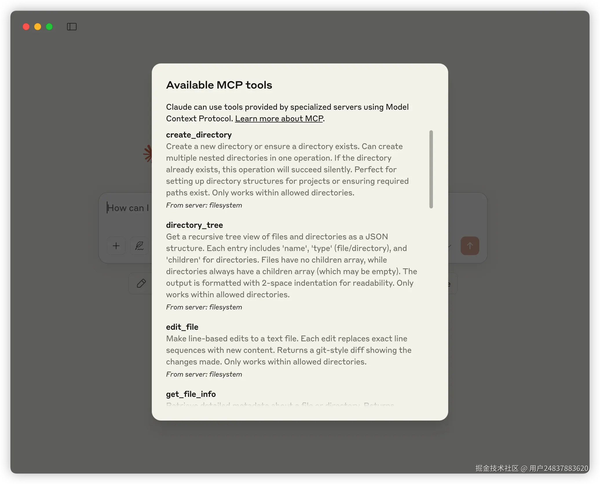 实际上,这个MCP Server会在Claude启动时自动加载,并在本地启动一个进程,因此本地必须具备相应的运行环境,否则该功能将无法正常使用。以filesystem为例,该Server需要使用npx命令,这意味着需要提供node的运行环境来确保其正常运行。