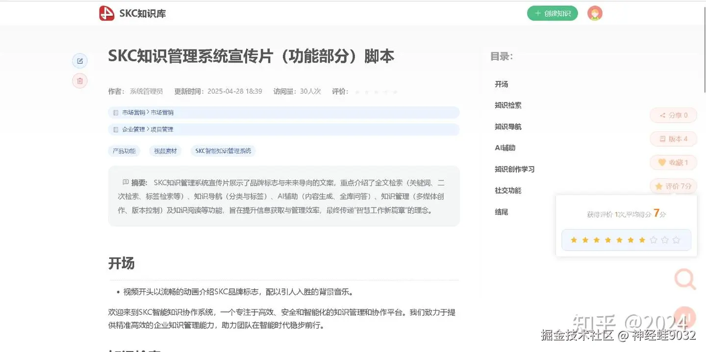 今天非常高兴能和大家分享一款全新知识协作工具——SKC智能知识协作系统。这款产品自上线以来受到了多个项目组的欢迎。它不仅仅是一个知识库管理系统,更是一个集“学习、创作、分享、协同”于一体的智能平台。