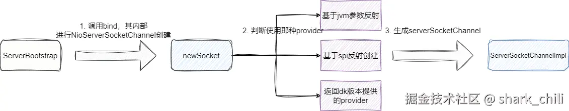 我们不妨通过代码的方式进行印证,我们服务端初始化时都是通过这个bind方法完成连接建立: