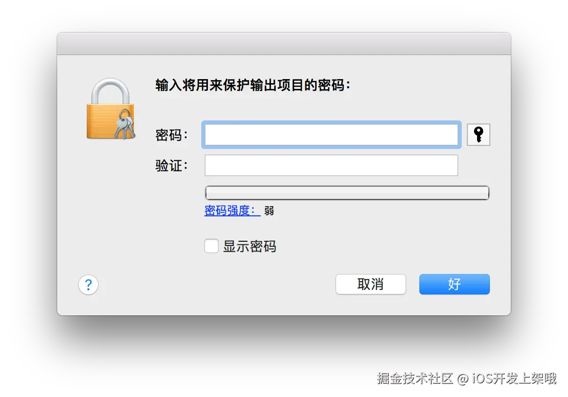 - 为应用发布证书创建一个密码,并记录下来。单击 好,保存应用发布证书。