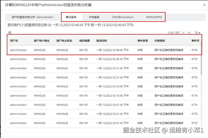 用户最近的登录历史记录,这对于破译帐户锁定的原因非常有用。通过分析用户的登录历史,IT管理员和服务台技术员可以了解可疑登录情况下存在的潜在威胁。