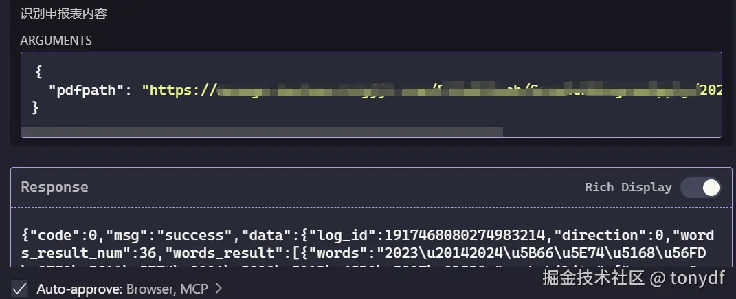 这里我们输入路径参数,看到MCP Server正确执行,Client上返回了期望的结果。