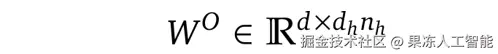 这里,W^O 是输出投影矩阵,把拼接后的注意力输出从 (n_h · d_h) 维映射回原本的 d 维。