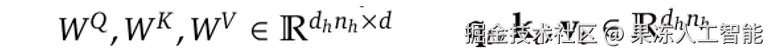 其中,W^Q、W^K 和 W^V 是线性映射矩阵: