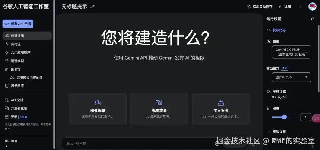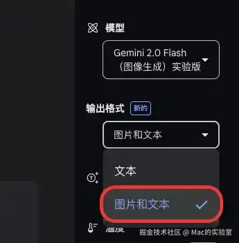 ③ 模型这里,一定要选择 Gemini 2.0 Flash(实验版)。