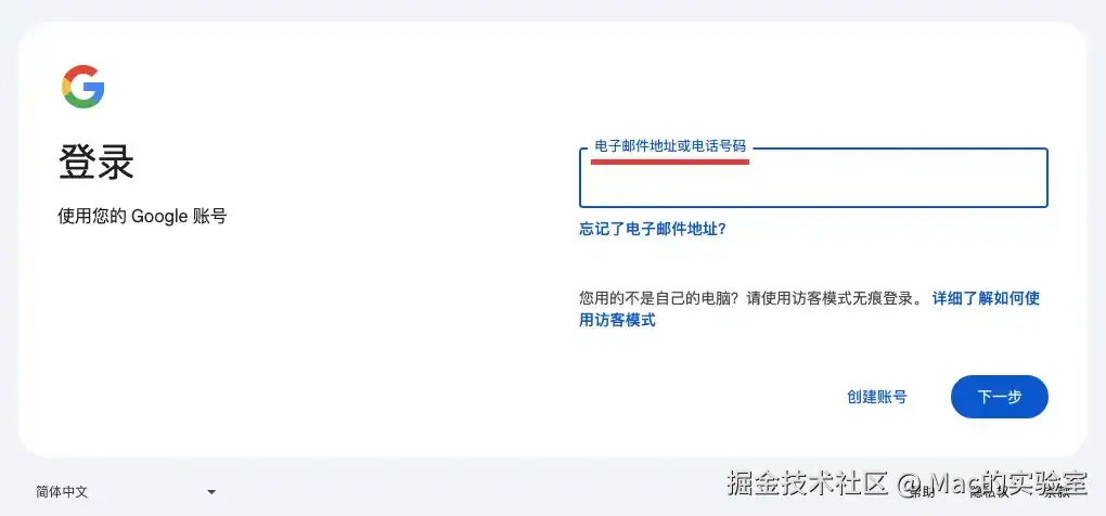 界面提示需要输入你的(Google)邮箱或者(美区)电话号码。