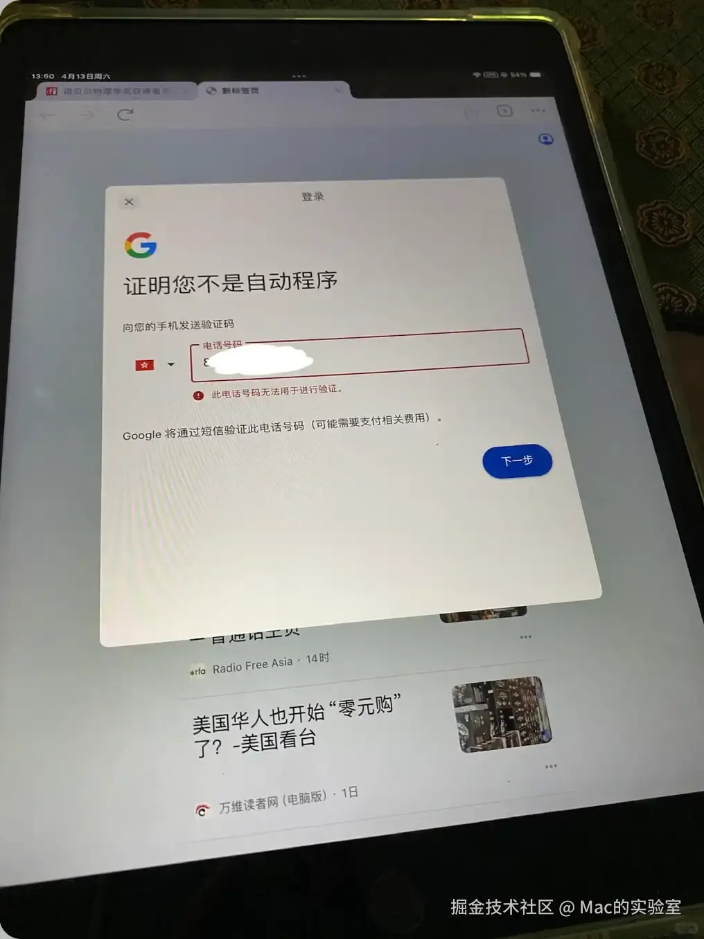 如果卡在此电话号码无法用于验证上,出现如下图的情况