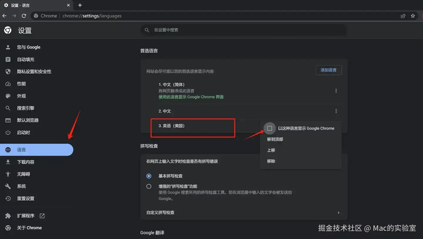 只留English(US)- 然后重启浏览器重新注册