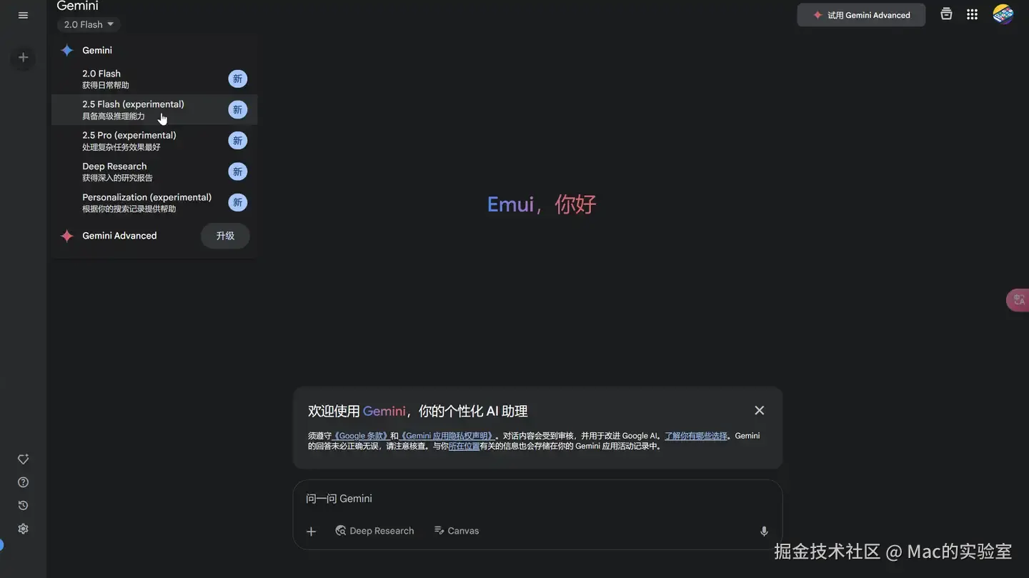 第二步:登录 Gemini 2.0 Flash Experimental,并完成设置。