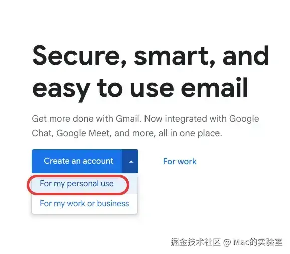 ② 点击上面的**「Create an accunt」(创建账号),选择「For my personal use」**(个人使用)就行。