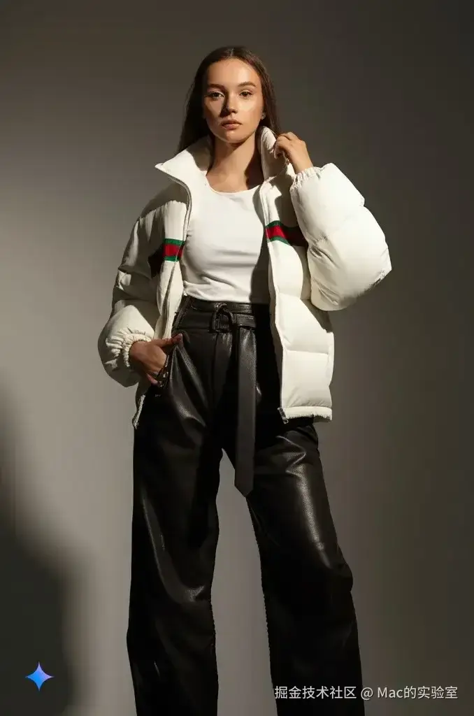 给它个简单的提示词:让模特穿上同款夹克。