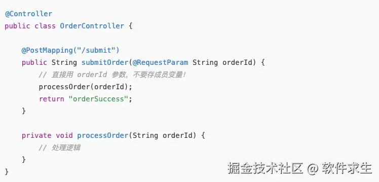 一旦 Controller 里写了成员变量,而且这个成员变量又是可变的、共享的,那简直是灾难现场!