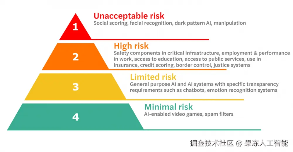 EU AI法案把AI分成4个风险等级,每级都有对应规则,按影响力定。