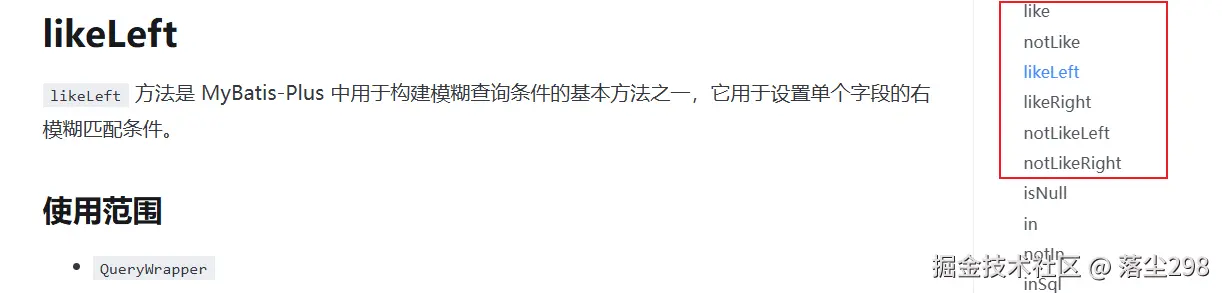 除此之外,Mybatis plus 也提供了另一种构造自定义 sql 的方式,来看官方文档中的介绍