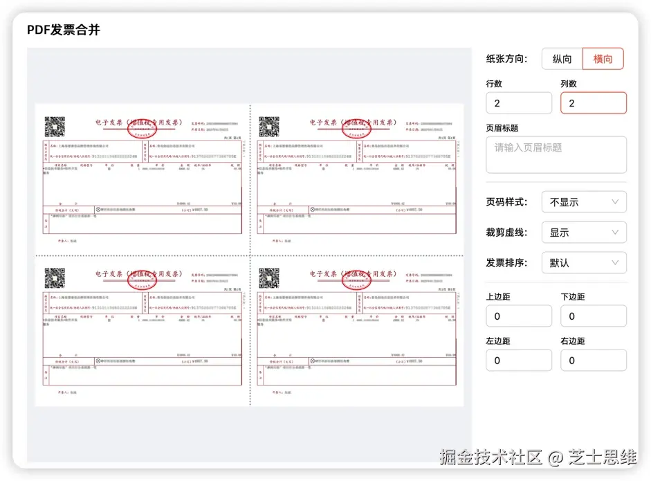 - 您可以通过预览查看发票排列、页码样式、裁剪虚线等效果。