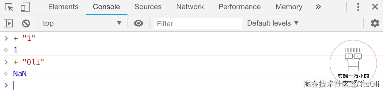 - 如果只有 一个“字符串” 操作数的时候,会尝试将这个“字符串”转换为 “数字”,但如果“字符串”无法转换为数字,则显示结果为:NaN。