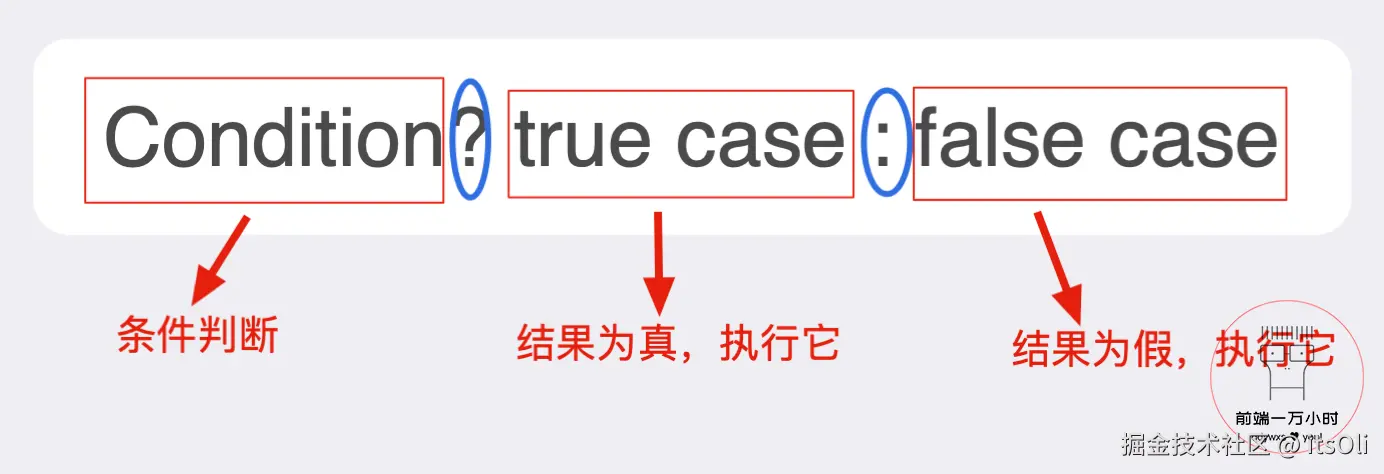 - 这里有一个 “条件判断”,如果“条件判断”为真,则整个表达式的结果就是 true case 执行的结果;