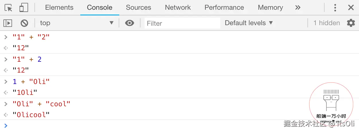 console.log(1 + "Oli")