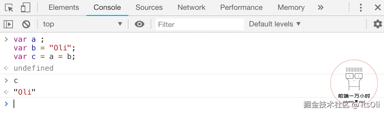 var c = a = b;
