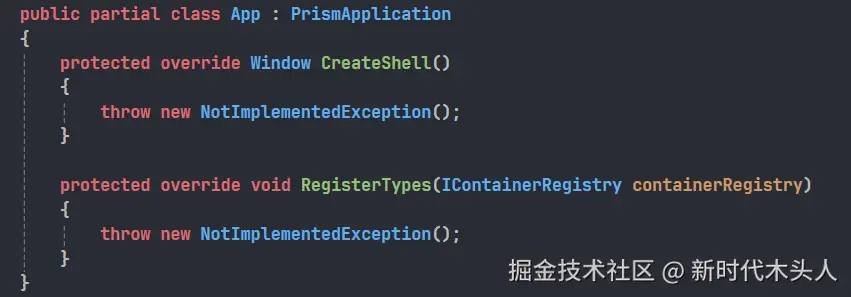 打开 App.xaml.cs 文件, 继承由 Application->PrismApplication, 如下所示: