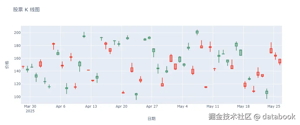 Plotly提供了plotly.graph_objects.Candlestick方法,可以方便地绘制 K线图。