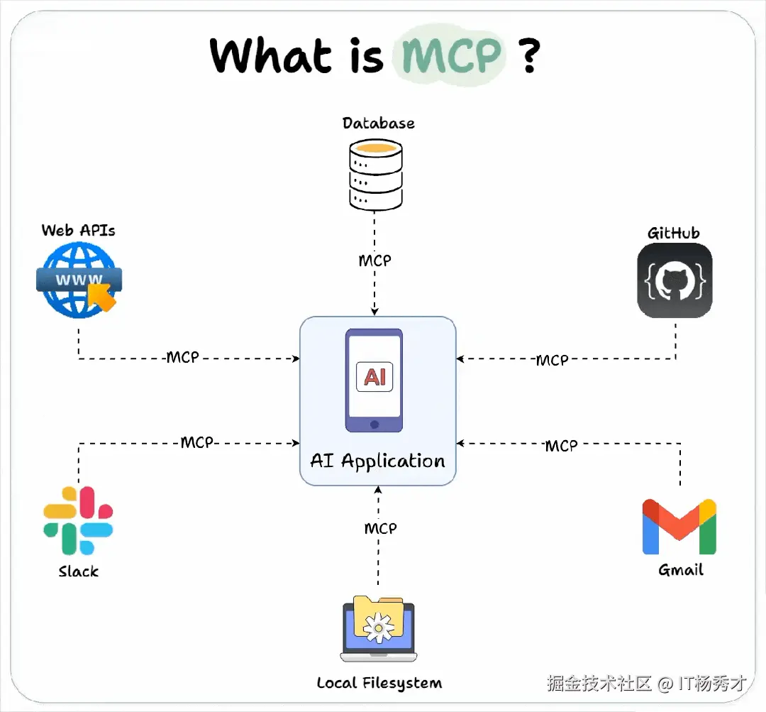 Model Context Protocol (MCP) 是一个社区共建的开放协议,由 Anthropic 在 2024 年 11 月推出,旨在使 AI 模型,尤其是大型语言模型(LLMs),能够更容易地与外部数据(如文件、数据库或 API)连接。它就像一个通用插头,可以让 AI“与”不同的系统交流,而不需要为每个系统进行定制设置。