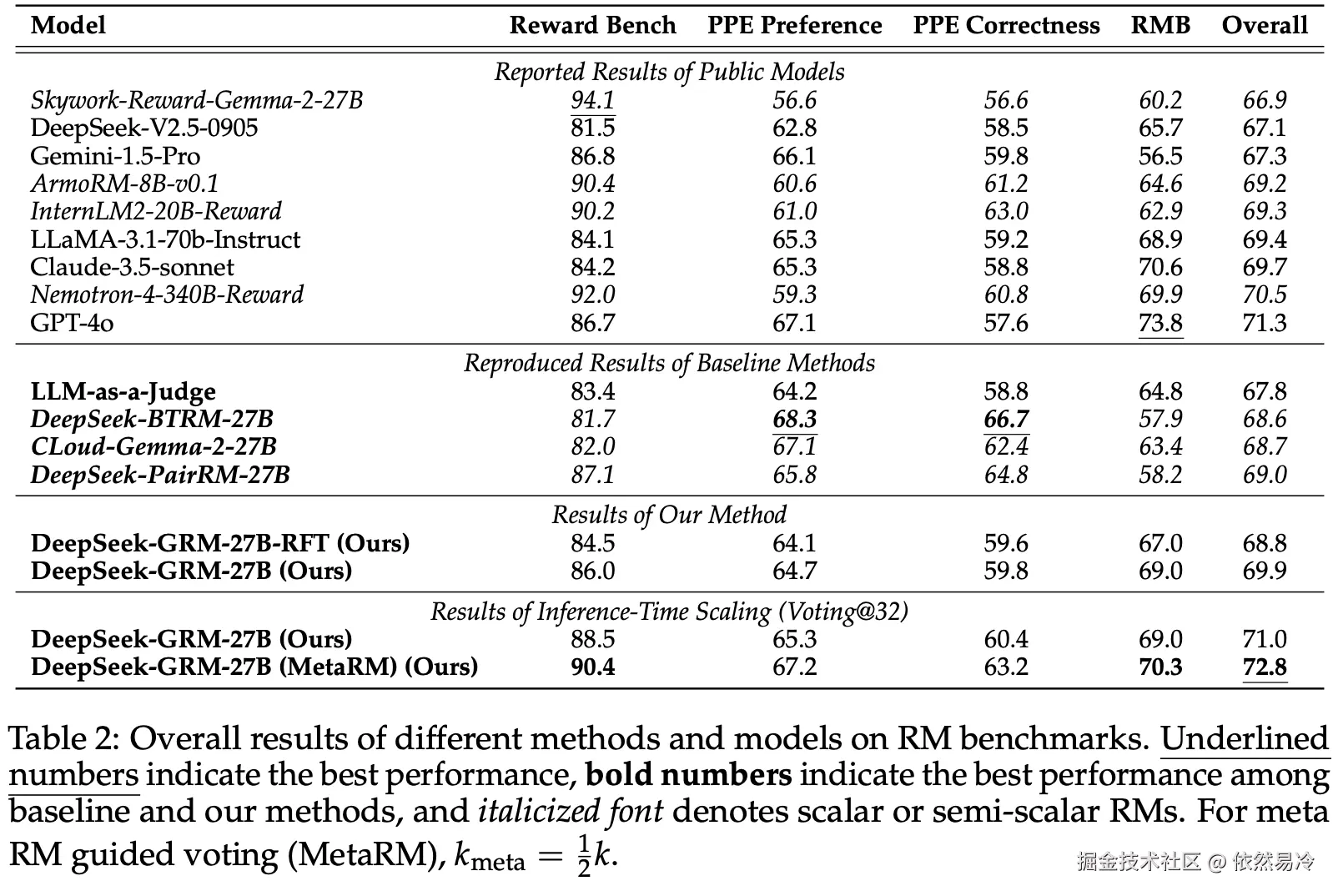 例如,在 PPE Correctness 基准上,DeepSeek-GRM-27B 的准确率(60.4%)低于 DeepSeek-BTRM-27B(66.7%)。