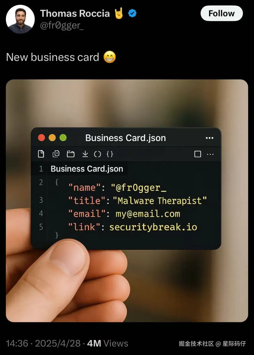它巧妙地将个人信息以键值对的形式呈现,既简洁又极具程序员风格。