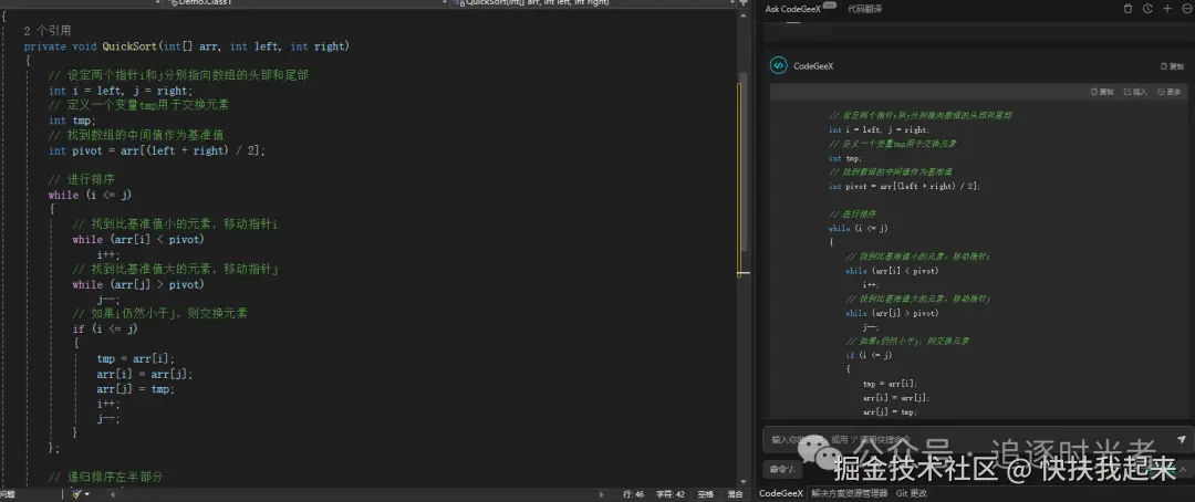CodeGeeX是一款基于大模型的智能编程助手,它可以实现代码的生成与补全、自动为代码添加注释、自动解释代码、自动编写单元测试、实现代码审查Code Review、自动修复代码fixbug、自动生成commit message完成git提交,以及在不同编程语言的代码间实现互译、针对技术和代码问题的智能问答等丰富的功能。