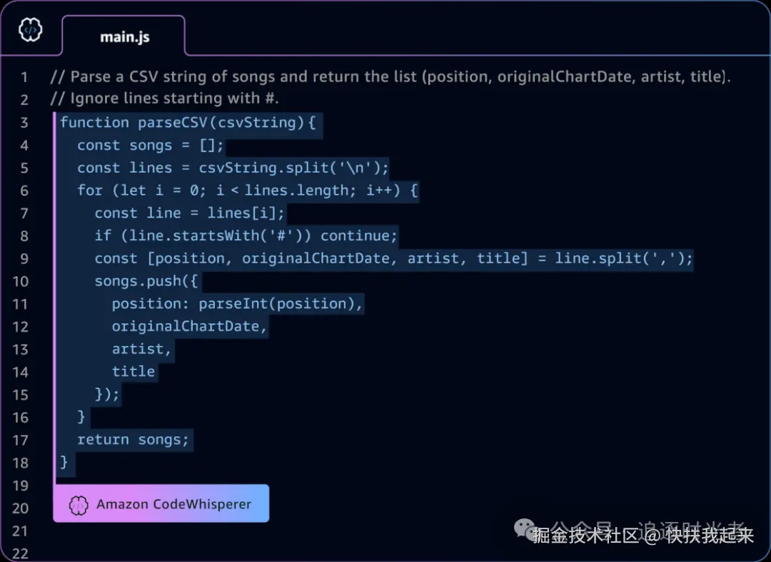 CodeWhisperer是亚⻢逊出品的一款基于机器学习的通用代码生成器,可实时提供代码建议。 在编写代码时,它会自动根据我们现有的代码和注释生成建议。从单行代码建议到完整的函数,它可为我们提供各种大小和范围的个性化建议。