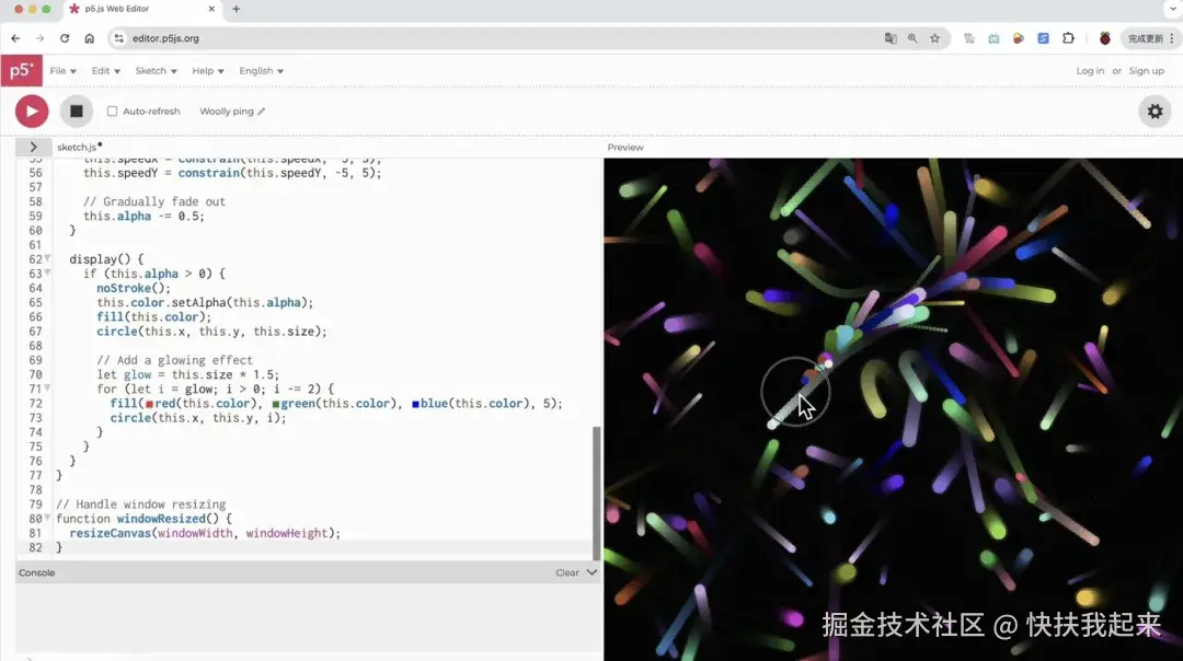 Prompt:推荐几个酷炫的P5.js特效,最好有互动性