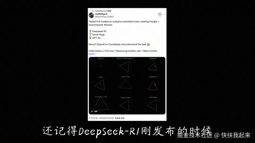 还记得DeepSeek-R1刚发布的时候,国外大佬们都在测试【2D六边形里一个小球受重力碰撞反弹】的效果。