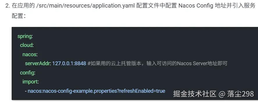 接下来,在官方文档中也给出 Nacos Config 地址的配置格式