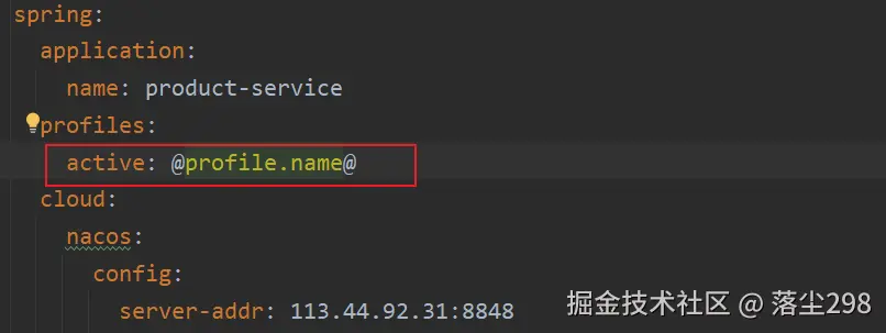 这次部署和之前有些不一样,由于 product-service 中多了一个 bootstrap.yml 配置文件,其中已经配置好了 profiles.active,所以可以直接改成 @profile.name@,然后只需要分别配置 dev 和 prod 下的配置