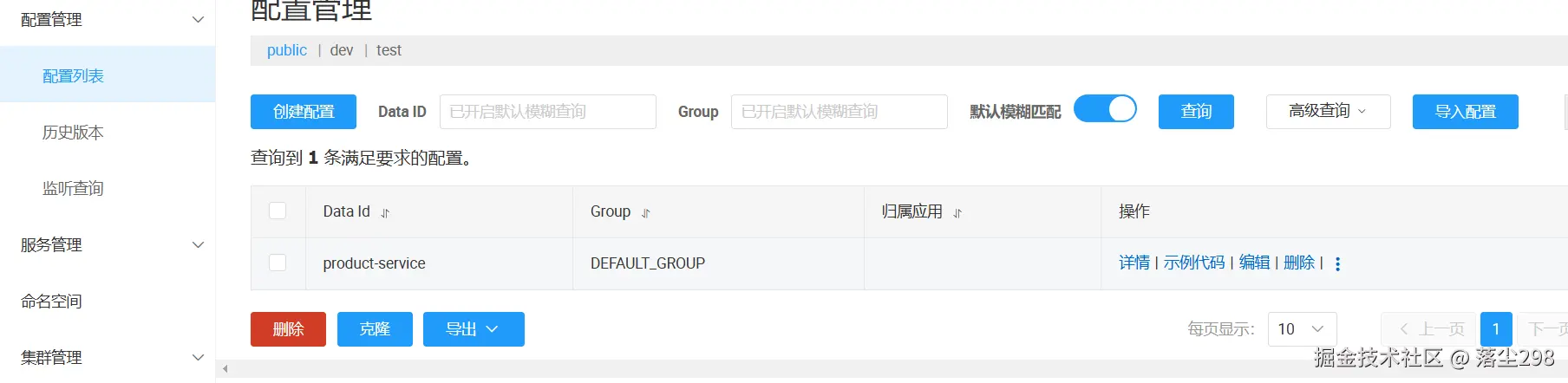 先分别创建 public 和 dev 环境下的配置