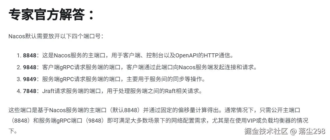 在访问之前还需要确保开放云服务器的端口号,除了 8848 端口号,还需要开启 9848 端口号