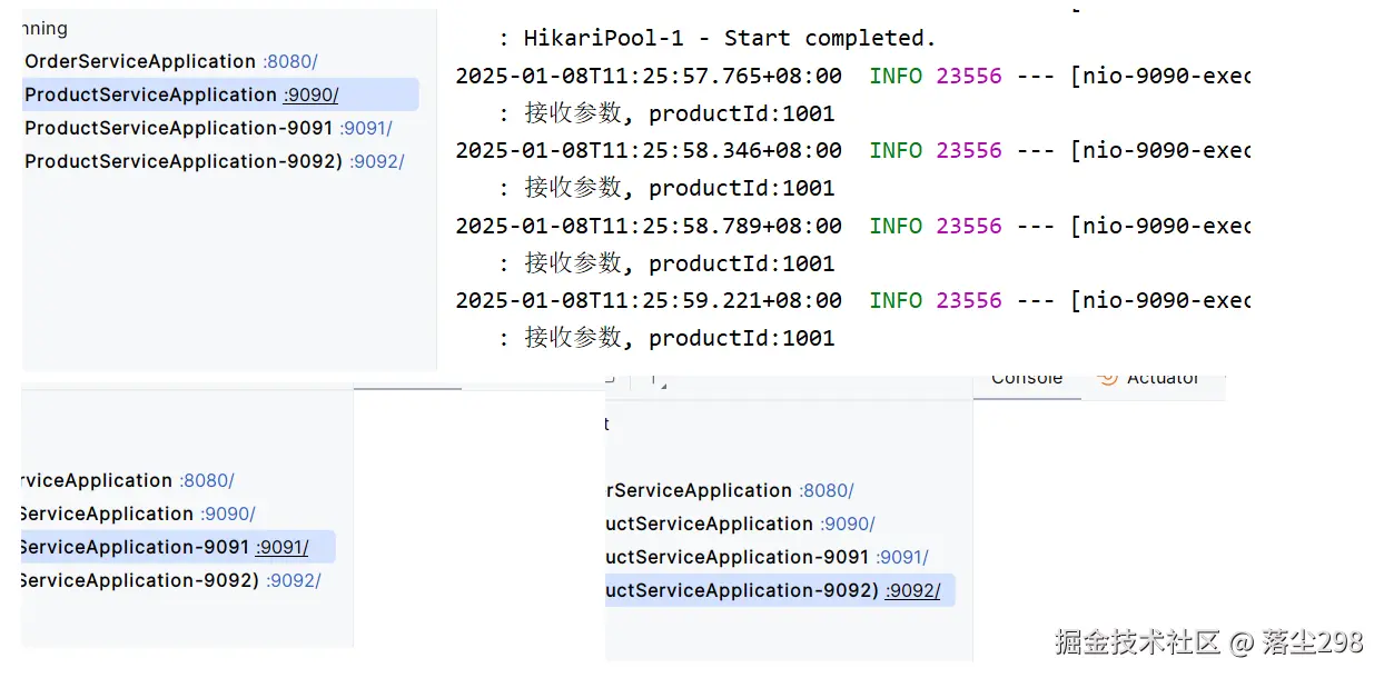 此时 order-service 作为客户端发起请求,所以需要配置在 order-service 下,之后重启服务,再重新发起请求,发现此时的权重配置已经生效了
