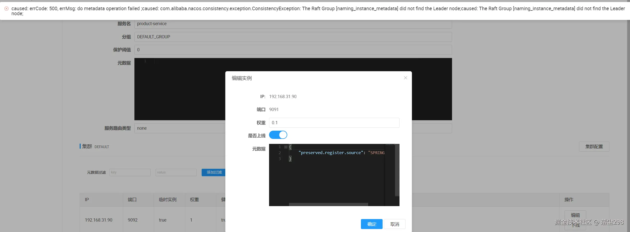 此时只有 order-service 在 dev 环境下,所以再去访问 product-service 是会报错的,处于同一个环境下才能访问到