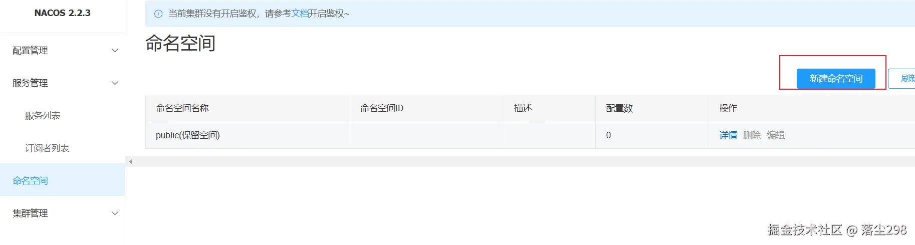Nacos 提供了 namespace(命名空间)来实现环境的隔离,不同的命名空间的服务不可见,通过以下方式在 Nacos 上创建命名空间