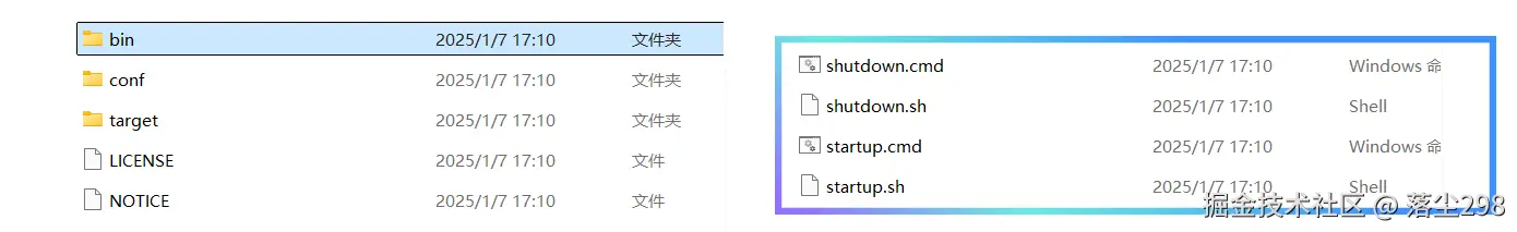 下载之后进行解压,bin 目录下面是启动和关闭脚本