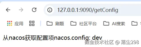不过此时如果修改 Nacos 配置中心的配置,再次获取还是修改前的,如果要实现实时更新还需要加上 @RefreshScope注解