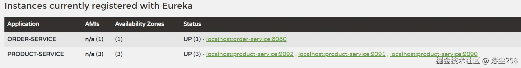 启动成功之后注册中心的 product-service 就有了三个实例