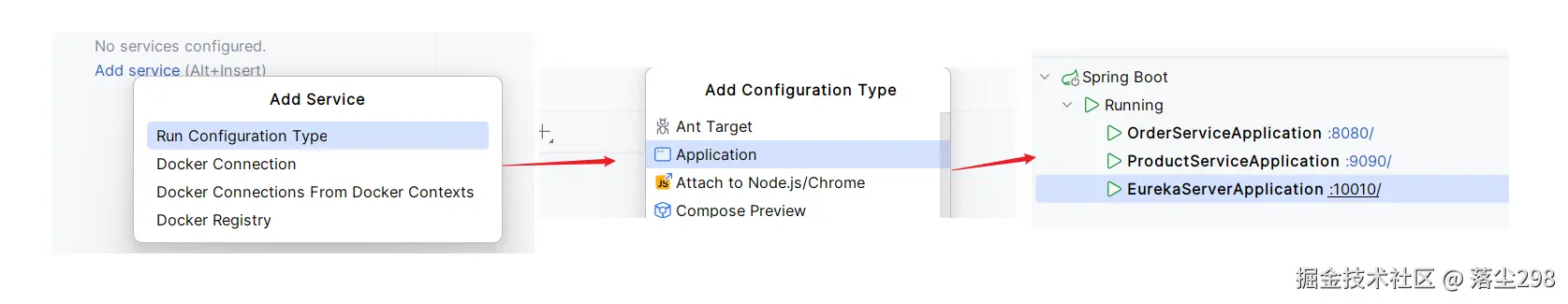 接着,由于需要测试负载均衡,再开启两个 product-service 服务,指定不同的端口号: