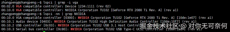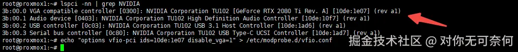 得到显卡的id是:10de:1e07(注意这里的10de:10f7,10de:1ad6 ,10de:1ad7应该都加上去,我这里就用显卡功能无所谓了 )