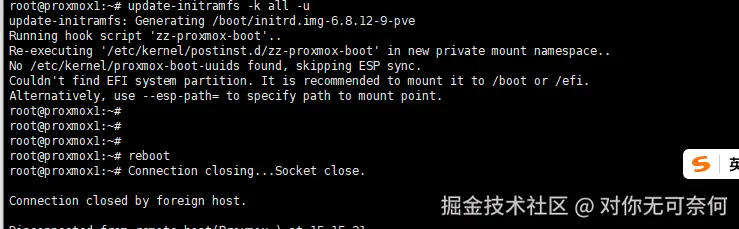 更新内核引导文件并重启宿主机: