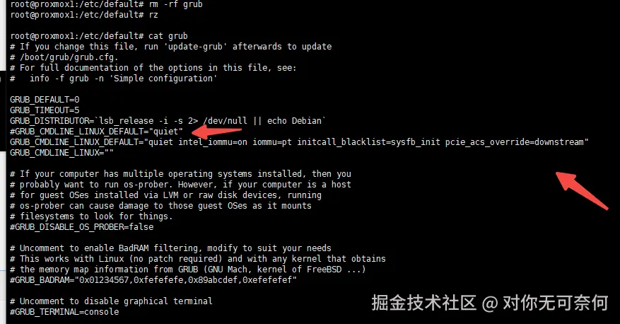 编辑/etc/default/grub文件,并在GRUB_CMDLINE_LINUX_DEFAULT行中添加以下内容(使用默认,pve版本为8.4):