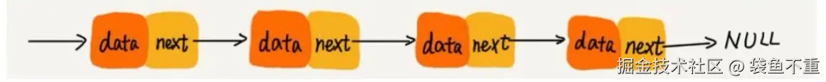 - 和数组相比,内存空间消耗更大,因为每个存储数据的节点都需要额外的空间存储后继指针。
