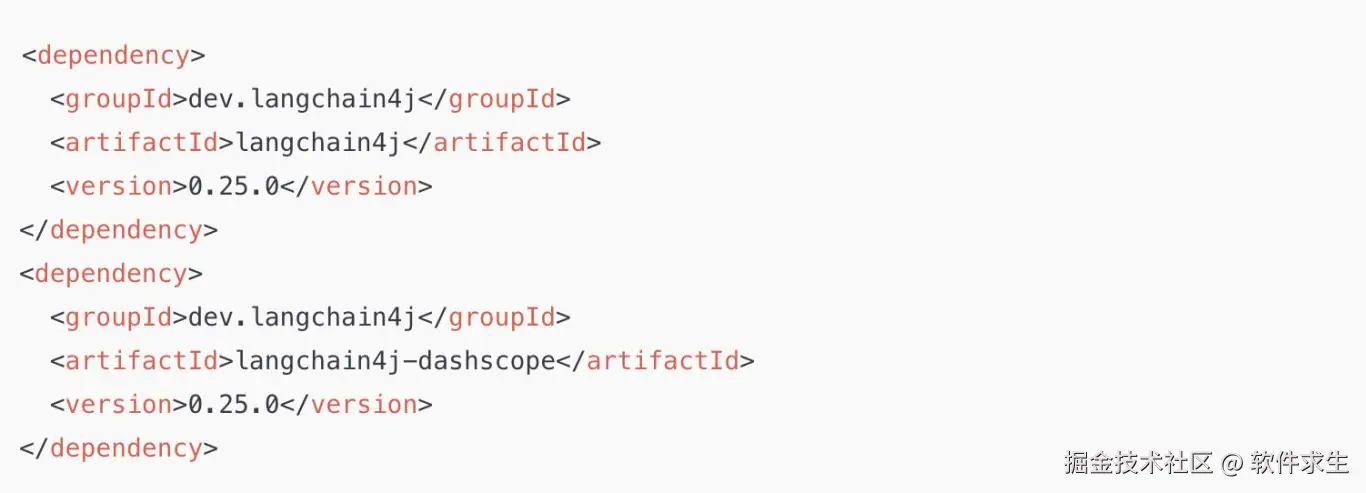 首先,在 pom.xml 中加上 LangChain4j 和 DashScope 支持: